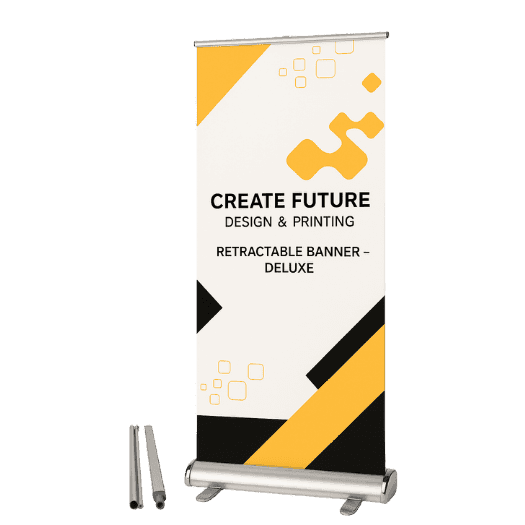 At Create Future Design & Printing, we produce high-resolution deluxe roll-up banners with vibrant colors, sharp details, and premium hardware that elevates your brand image.